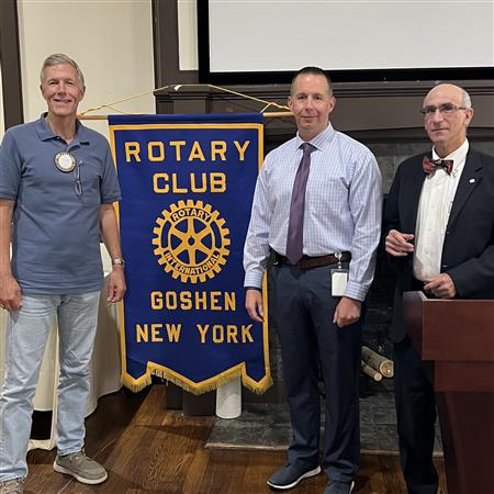 Posted on Aug 03, 2023 The Rotary Club of Goshen NY welcomes new member - Robert Doss (c.) with Sponsor Ron Kliverick (l.) and President Neal Frishberg(r.) _____________________________________________